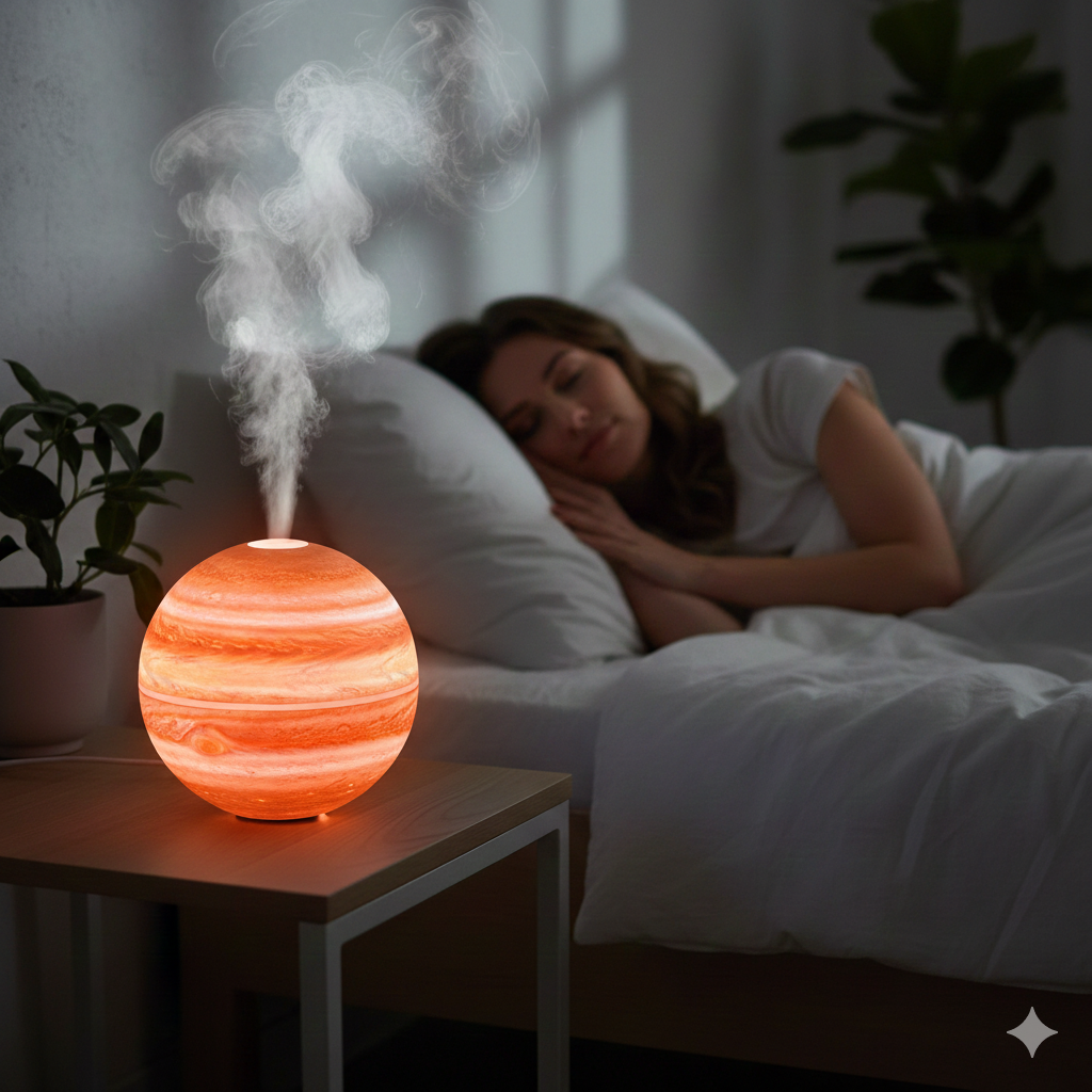 Piel seca, ¿humedad? Un toque cambia entre niebla constante o intermitente 💨. ¿Noche tranquila? La luz LED de tu planeta crea el ambiente perfecto para tu descanso 😴.
